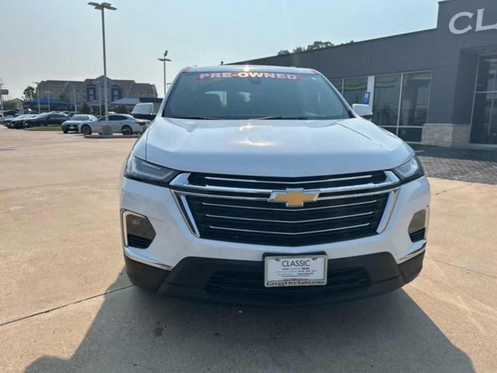 This 2023 Chevrolet Traverse comes equipped with the following features Convenience & Driver Confidence Package (4.2 Multi-Color Enhanced Driver Instrument Display, Heated Driver & Front Passenger Seats, Radio: Chevrolet Infotainment 3 Plus System, Rear Power Liftgate, Remote Start, SiriusXM w/360L, and Universal Home Remote), Front License Plate Bracket Mounting Package, Preferred Equipment Group 1LT, 2-Way Manual Front Passenger Seat Adjuster, 3.49 Axle Ratio, 3rd row seats: split-bench, 4-Wheel Disc Brakes, 6 Speakers, 6-Speaker Audio System Feature, 8-Way Power Driver Seat Adjuster, ABS brakes, Air Conditioning, Alloy wheels, AM/FM radio: SiriusXM, Apple CarPlay/Android Auto, Auto High-beam Headlights, Automatic temperature control, Black Roof Rails, Brake assist, Bumpers: body-color, Compass, Delay-off headlights, Driver door bin, Driver vanity mirror, Dual front impact airbags, Dual front side impact airbags, Electronic Stability Control, Emergency communication system, Exterior Parking Camera Rear, Four wheel independent suspension, Front anti-roll bar, Front Bucket Seats, Front Center Armrest, Front dual zone A/C, Front reading lights, Fully automatic headlights, Heated door mirrors, Illuminated entry, Leather steering wheel, Low tire pressure warning, Not Equipped w/Rear Park Assist (060), Occupant sensing airbag, Outside temperature display, Overhead airbag, Overhead console, Panic alarm, Passenger door bin, Passenger vanity mirror, Power door mirrors, Power Driver Lumbar Control, Power driver seat, Power steering, Power windows, Premium Cloth Seat Trim, Radio data system, Radio: Chevrolet Infotainment System AM/FM Stereo, Rear air conditioning, Rear anti-roll bar, Rear reading lights, Rear window defroster, Rear window wiper, Remote keyless entry, Security system, SiriusXM Radio, Speed control, Speed-sensing steering, Spoiler, Steering wheel mounted audio controls, Tachometer, Telescoping steering wheel, Tilt steering wheel, Traction control, Trip computer, Turn signal indicator mirrors, Variably intermittent wipers, Voltmeter, and Wheels: 18 Bright Silver-Painted Aluminum. Clean CARFAX. CARFAX One-Owner. 2023 Chevrolet Traverse LT 1LT FWD 3.6L V6 SIDI VVT