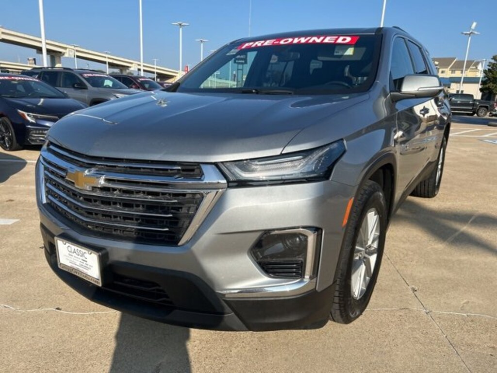 This 2023 Chevrolet Traverse comes equipped with the following features Floor Liner Package (LPO) (1st & 2nd Row All-Weather Floor Liner (LPO), 3rd Row All-Weather Floor Liner (LPO), and Integrated Cargo Liner (LPO)), Front License Plate Bracket Mounting Package, Preferred Equipment Group 3LT (Heated Driver & Front Passenger Seats), AWD, 3.49 Axle Ratio, 3rd row seats: split-bench, 4-Wheel Disc Brakes, 6 Speakers, 6-Speaker Audio System Feature, 6-Way Power Front Passenger Seat, 8-Way Power Driver Seat Adjuster, ABS brakes, Air Conditioning, Alloy wheels, AM/FM radio: SiriusXM with 360L, Apple CarPlay/Android Auto, Auto High-beam Headlights, Automatic temperature control, Black Roof Rails, Brake assist, Bumpers: body-color, Compass, Delay-off headlights, Driver door bin, Driver vanity mirror, Dual front impact airbags, Dual front side impact airbags, Electronic Stability Control, Emergency communication system, Exterior Parking Camera Rear, Four wheel independent suspension, Front anti-roll bar, Front Bucket Seats, Front Center Armrest, Front dual zone A/C, Front Passenger 2-Way Power Lumbar, Front reading lights, Fully automatic headlights, Garage door transmitter, Heated door mirrors, Heated front seats, Heated steering wheel, Illuminated entry, Leather steering wheel, Leather-Appointed Seat Trim, Low tire pressure warning, Not Equipped w/Rear Park Assist (060), Occupant sensing airbag, Outside temperature display, Overhead airbag, Overhead console, Panic alarm, Passenger door bin, Passenger vanity mirror, Power door mirrors, Power Driver Lumbar Control, Power driver seat, Power Liftgate, Power passenger seat, Power steering, Power windows, Premium audio system: Chevrolet Infotainment 3 Plus, Radio data system, Radio: Chevrolet Infotainment 3 Plus System, Rear air conditioning, Rear anti-roll bar, Rear reading lights, Rear window defroster, Rear window wiper, Remote keyless entry, Security system, SiriusXM w/360L, Speed control, Speed-sensing steering, Spoiler, Steering wheel mounted audio controls, Tachometer, Telescoping steering wheel, Tilt steering wheel, Traction control, Trip computer, Turn signal indicator mirrors, Variably intermittent wipers, Voltmeter, and Wheels: 18 Bright Silver-Painted Aluminum. AWD. Clean CARFAX. CARFAX One-Owner. 2023 Chevrolet Traverse LT Leather AWD 3.6L V6 SIDI VVT