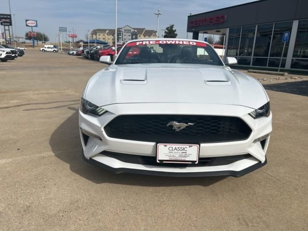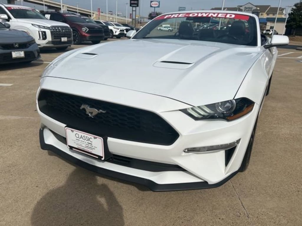 This 2023 Ford Mustang comes equipped with the following features Equipment Group 200A, 4-Wheel Disc Brakes, 4G LTE Wi-Fi Hotspot Removal, 9 Speakers, ABS brakes, ActiveX Bucket Seats, Air Conditioning, Alloy wheels, AM/FM radio: SiriusXM, AM/FM Stereo, Auto High-beam Headlights, Auto-dimming Rear-View mirror, Automatic temperature control, Brake assist, Bumpers: body-color, Climate Controlled Heated/Cooled Front Seats, Compass, Convertible roof lining, Delay-off headlights, Driver door bin, Driver vanity mirror, Dual front impact airbags, Dual front side impact airbags, Electronic Stability Control, Emergency communication system: 911 Assist, Exterior Parking Camera Rear, Four wheel independent suspension, Front anti-roll bar, Front Bucket Seats, Front Center Armrest, Front dual zone A/C, Front reading lights, Fully automatic headlights, Glass rear window, Heated door mirrors, Heated front seats, Illuminated entry, Knee airbag, Leather Shift Knob, Low tire pressure warning, Occupant sensing airbag, Outside temperature display, Overhead console, Panic alarm, Passenger door bin, Passenger vanity mirror, Power convertible roof, Power door mirrors, Power driver seat, Power passenger seat, Power steering, Power windows, Radio data system, Rain sensing wipers, Rear anti-roll bar, Rear Parking Sensors, Rear window defroster, Remote keyless entry, Security system, SiriusXM Radio, Speed control, Speed-sensing steering, Speed-Sensitive Wipers, Spoiler, Steering wheel mounted audio controls, SYNC 3 Communications & Entertainment System, Tachometer, Telescoping steering wheel, Tilt steering wheel, Traction control, Trip computer, Variably intermittent wipers, Ventilated front seats, Voltmeter, and Wheels: 18 x 8 Machined-Face Aluminum. Clean CARFAX. CARFAX One-Owner. 2023 Ford Mustang EcoBoost Premium RWD EcoBoost 2.3L I4 GTDi DOHC Turbocharged VCT