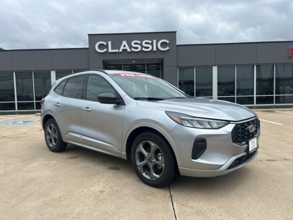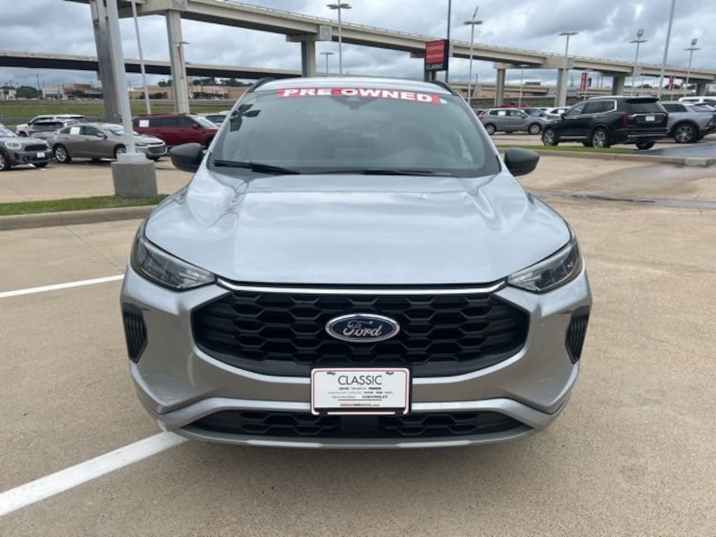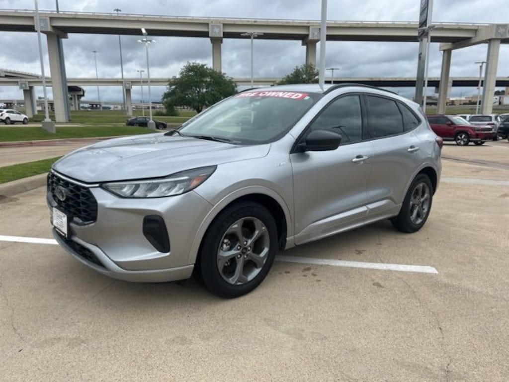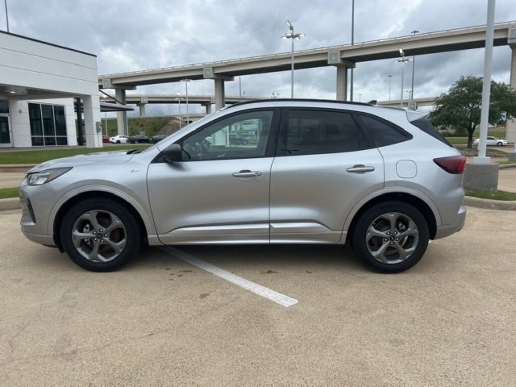 This 2024 Ford Escape comes equipped with the following features Equipment Group 300A, 3.81 Axle Ratio, 4-Wheel Disc Brakes, 6 Speakers, ABS brakes, Air Conditioning, Alloy wheels, AM/FM radio: SiriusXM, AM/FM Stereo, Auto High-beam Headlights, Automatic temperature control, Brake assist, Bumpers: body-color, Compass, Delay-off headlights, Driver door bin, Driver vanity mirror, Dual front impact airbags, Dual front side impact airbags, Electronic Stability Control, Emergency communication system: SYNC 4 911 Assist, Exterior Parking Camera Rear, FordPass Connect, Four wheel independent suspension, Front anti-roll bar, Front Bucket Seats, Front Center Armrest, Front dual zone A/C, Front License Plate Bracket, Front reading lights, Fully automatic headlights, Illuminated entry, Knee airbag, Low tire pressure warning, Occupant sensing airbag, Outside temperature display, Overhead airbag, Overhead console, Panic alarm, Passenger door bin, Passenger vanity mirror, Power door mirrors, Power driver seat, Power Liftgate, Power steering, Power windows, Radio data system, Rear anti-roll bar, Rear reading lights, Rear seat center armrest, Rear window defroster, Rear window wiper, Remote keyless entry, Roof rack: rails only, Speed control, Speed-sensing steering, Speed-Sensitive Wipers, Split folding rear seat, Spoiler, Sport steering wheel, Steering wheel mounted audio controls, SYNC 4, Tachometer, Telescoping steering wheel, Tilt steering wheel, Traction control, Trip computer, Variably intermittent wipers, Vinyl/Cloth Front Sport Contour Bucket Seats, and Wheels: 18 Rock Metallic Painted Aluminum. Clean CARFAX. CARFAX One-Owner. Priced below KBB Fair Purchase Price! 2024 Ford Escape ST-Line FWD 1.5L EcoBoost27/34 City/Highway MPGAll prices include $2,000 rebate already! ** $1,000.00 Rebate conditioned on Financing with GM Financial using Standard Financing Rates. Trade-In Assistance Rebate of $1,000.00 when Trading in a Vehicle that is less than 12 years old** All auto's have addendum in accessories added not included in price. Iconic Silver Metallic
