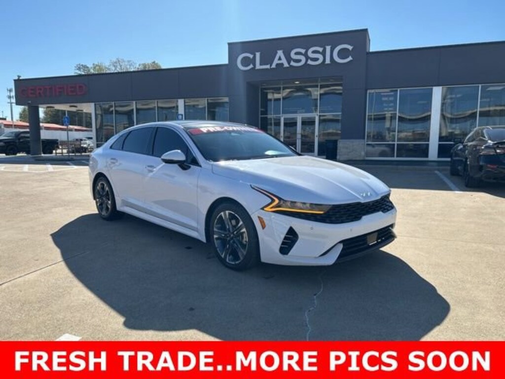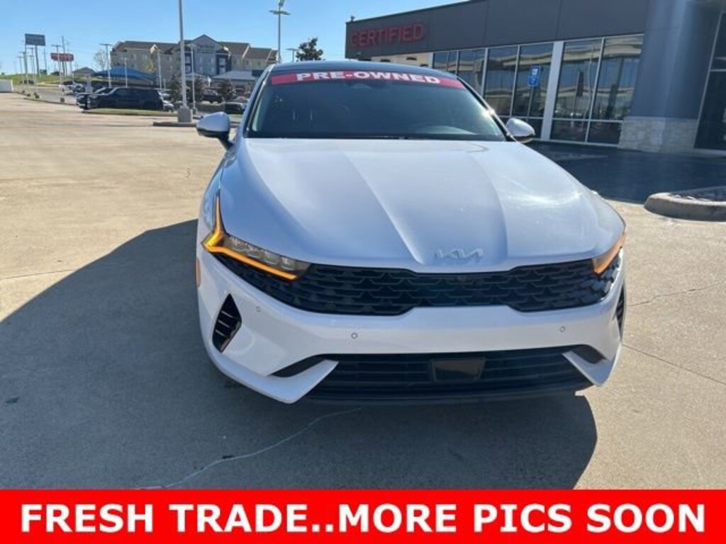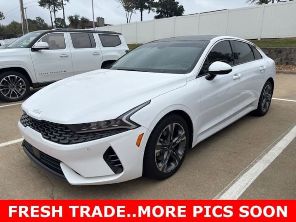 This 2022 Kia K5 comes equipped with the following features EX Premium Package (10-Way Power Passenger Seat, Active Sound Design, Auto Up/Down Rear Windows, Bose Premium Audio, Forward Collision Avoidance-Assist - Cyclist, Forward Collision Avoidance-Assist - Junction Turn, Heated Steering Wheel, LED Rear Combi Lamps, Memory Driver's Seat & Outside Mirrors, Navigation-Based Smart Cruise Control - Curve, Outside Mirrors w/LED Turn Signals, Parking Collision Avoidance-Assist - Reverse, Parking Distance Warning - Forward, Power Child Lock, Power Folding Outside Mirrors, Safe Exit Assist w/Lock, Smart Cruise Control w/Stop & Go, and Surround View Monitor), 4-Wheel Disc Brakes, 6 Speakers, ABS brakes, Air Conditioning, Alloy wheels, AM/FM radio: SiriusXM, Apple CarPlay & Android Auto, Auto High-beam Headlights, Automatic temperature control, Brake assist, Bumpers: body-color, Carpeted Floor Mats, Delay-off headlights, Driver door bin, Driver vanity mirror, Dual front impact airbags, Dual front side impact airbags, Electronic Stability Control, Emergency communication system, Four wheel independent suspension, Front anti-roll bar, Front Bucket Seats, Front Center Armrest, Front dual zone A/C, Front reading lights, Fully automatic headlights, Heated & Ventilated Front Bucket Seats, Heated door mirrors, Heated front seats, Illuminated entry, Knee airbag, Leatherette Seat Trim, Low tire pressure warning, Navigation System, Occupant sensing airbag, Outside temperature display, Overhead airbag, Overhead console, Panic alarm, Passenger door bin, Passenger vanity mirror, Power door mirrors, Power driver seat, Power moonroof, Power steering, Power windows, Radio data system, Radio: AM/FM/MP3 Audio System, Rear anti-roll bar, Rear reading lights, Rear seat center armrest, Rear side impact airbag, Rear window defroster, Remote keyless entry, Security system, Smart Key w/ Push Button and Remote Start, Speed control, Speed-sensing steering, Split folding rear seat, Steering wheel mounted audio controls, Tachometer, Telescoping steering wheel, Tilt steering wheel, Traction control, Trip computer, Variably intermittent wipers, Ventilated front seats, and Wheels: 7.5J x 18 Gray Machined Finish Alloy. CARFAX One-Owner. 2022 Kia K5 EX FWD I4