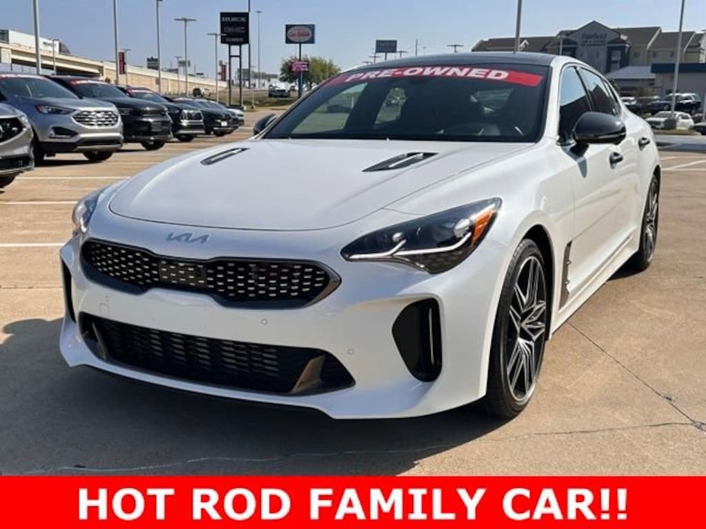 This 2023 Kia Stinger comes equipped with the following features Red Interior Color Package (Red Leather Seat Trim), 15 Speakers, 4-Wheel Disc Brakes, ABS brakes, Adaptive suspension, Air Conditioning, Alloy wheels, AM/FM radio: SiriusXM, Anti-whiplash front head restraints, Apple CarPlay & Android Auto, Auto High-beam Headlights, Auto tilt-away steering wheel, Auto-dimming door mirrors, Auto-dimming Rear-View mirror, Automatic temperature control, Brake assist, Bumpers: body-color, Compass, Delay-off headlights, Door Sill Applique, Driver door bin, Driver vanity mirror, Dual front impact airbags, Dual front side impact airbags, Electronic Stability Control, Emergency communication system, Four wheel independent suspension, Front anti-roll bar, Front Bucket Seats, Front Center Armrest, Front dual zone A/C, Front reading lights, Fully automatic headlights, Garage door transmitter: HomeLink, harman/kardon® Speakers, Heads-Up Display, Heated & Ventilated Front Bucket Seats, Heated door mirrors, Heated front seats, Heated rear seats, Illuminated entry, Knee airbag, Low tire pressure warning, Memory seat, Nappa Leather Seat Trim, Navigation System, Occupant sensing airbag, Outside temperature display, Overhead airbag, Overhead console, Panic alarm, Passenger door bin, Passenger vanity mirror, Power door mirrors, Power driver seat, Power Liftgate, Power moonroof, Power passenger seat, Power steering, Power windows, Radio: harmon/kardon AM/FM/MP3/HD Audio System, Rain sensing wipers, Rear air conditioning, Rear anti-roll bar, Rear Bumper Applique, Rear reading lights, Rear seat center armrest, Rear window defroster, Remote keyless entry, Security system, Smart Key w/ Push Button and Remote Start, Speed control, Speed-sensing steering, Speed-Sensitive Wipers, Split folding rear seat, Sport steering wheel, Steering wheel memory, Steering wheel mounted audio controls, Tachometer, Telescoping steering wheel, Tilt steering wheel, Traction control, Trip computer, Turn signal indicator mirrors, Variably intermittent wipers, Ventilated front seats, Wheel Locks, and Wheels: 8.0J x 19 Front/8.5J x 19 Rear Spire Alloy. Clean CARFAX. CARFAX One-Owner. 2023 Kia Stinger GT2 AWD 3.3L V6 DGI