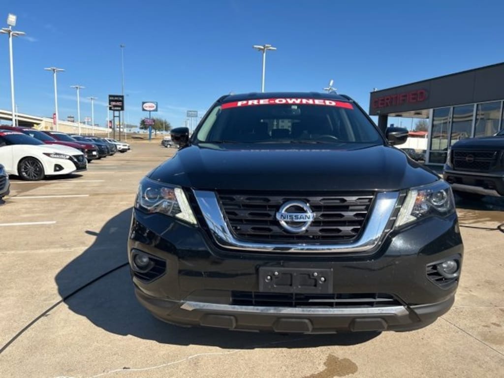 This 2020 Nissan Pathfinder comes equipped with the following features 3rd row seats: bench, 4-Wheel Disc Brakes, 5.25 Axle Ratio, 6 Speakers, ABS brakes, Air Conditioning, Alloy wheels, AM/FM radio: SiriusXM, Auto-dimming Rear-View mirror, Automatic temperature control, Blind Spot Warning, Brake assist, Bumpers: body-color, Carpeted Floor Mats (4-pc Set), CD player, Cloth Seating Surfaces, Compass, Delay-off headlights, Driver door bin, Driver vanity mirror, Dual front impact airbags, Dual front side impact airbags, Electronic Stability Control, Four wheel independent suspension, Front anti-roll bar, Front Bucket Seats, Front Center Armrest, Front dual zone A/C, Front fog lights, Front reading lights, Fully automatic headlights, Garage door transmitter: HomeLink, Illuminated entry, Leather Shift Knob, Leather steering wheel, Low tire pressure warning, Occupant sensing airbag, Outside temperature display, Overhead airbag, Overhead console, Panic alarm, Passenger door bin, Passenger vanity mirror, Power door mirrors, Power driver seat, Power steering, Power windows, Radio data system, Radio: AM/FM/CD Audio System w/NissanConnect, Rear air conditioning, Rear anti-roll bar, Rear Parking Sensors, Rear reading lights, Rear seat center armrest, Rear window defroster, Rear window wiper, Reclining 3rd row seat, Remote keyless entry, Security system, Speed control, Speed-sensing steering, Speed-Sensitive Wipers, Split folding rear seat, Spoiler, Steering wheel mounted audio controls, Tachometer, Telescoping steering wheel, Tilt steering wheel, Traction control, Trip computer, Turn signal indicator mirrors, Variably intermittent wipers, and Wheels: 18 x 7.5 J Machined Aluminum-Alloy. Clean CARFAX. 2020 Nissan Pathfinder SV FWD V6