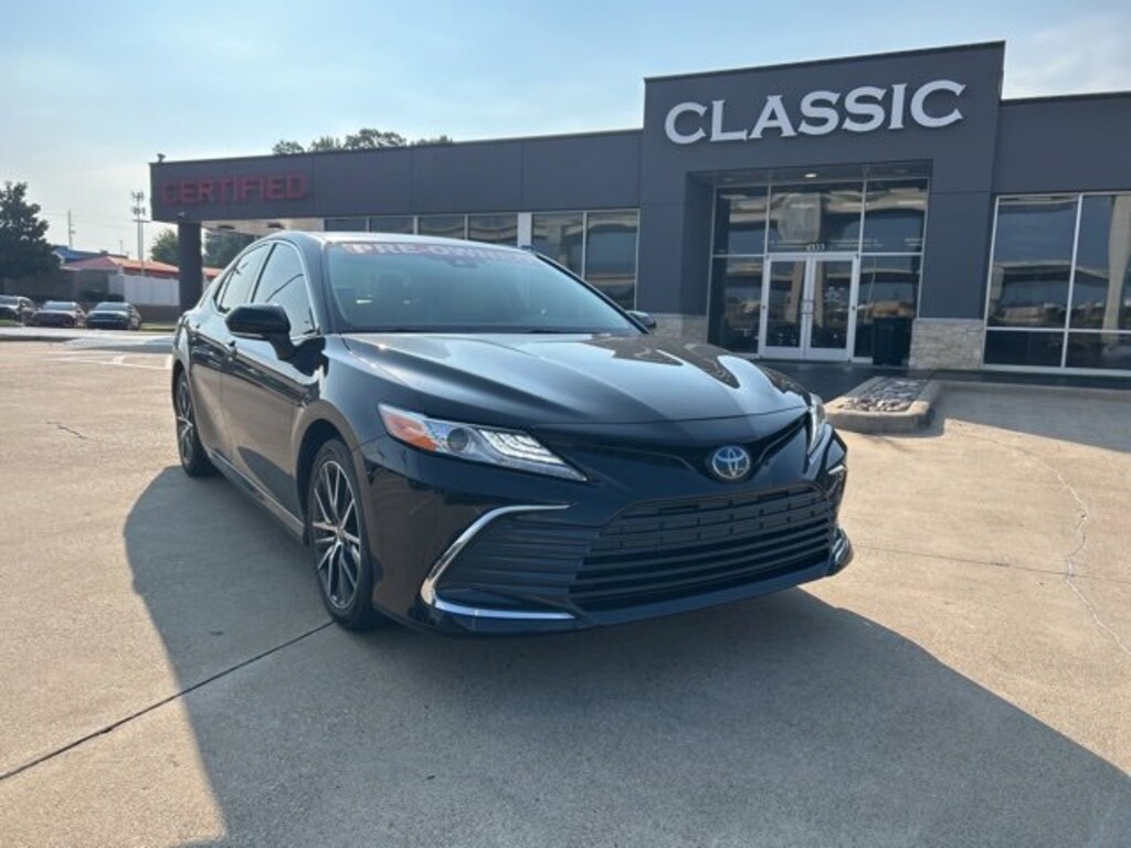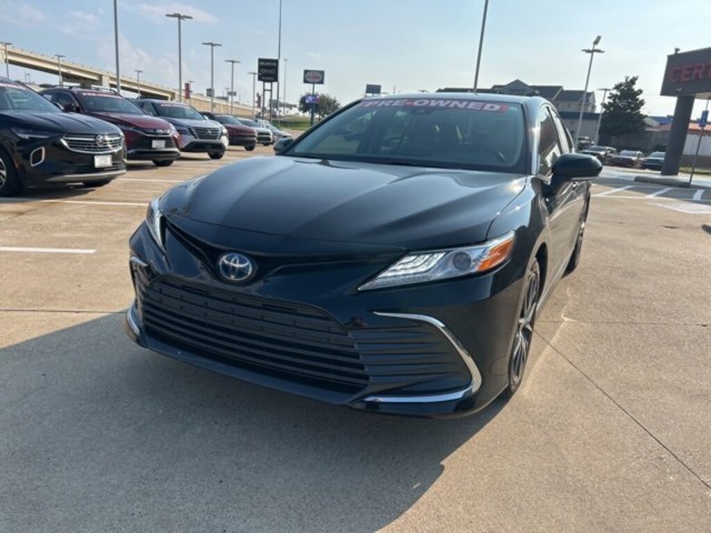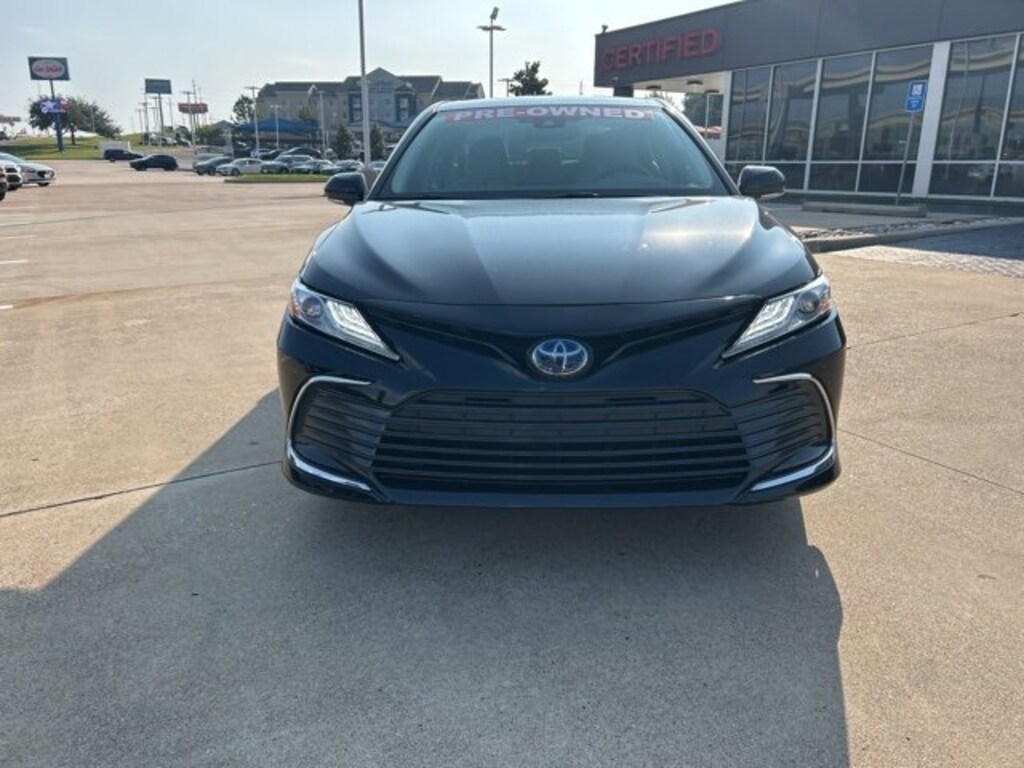 This 2023 Toyota Camry Hybrid comes equipped with the following features Cold Weather Package (Heated Steering Wheel), 2.5L I4 DOHC 16V, 4-Wheel Disc Brakes, 6 Speakers, 8.0J x 18 Alloy Wheels, ABS brakes, Air Conditioning, Alloy wheels, AM/FM radio: SiriusXM, Apple CarPlay/Android Auto, Auto High-beam Headlights, Auto-dimming Rear-View mirror, Automatic temperature control, Brake assist, Bumpers: body-color, Delay-off headlights, Driver door bin, Driver vanity mirror, Dual front impact airbags, Dual front side impact airbags, Electronic Stability Control, Emergency communication system: Safety Connect (1-year trial), Exterior Parking Camera Rear, Four wheel independent suspension, Front anti-roll bar, Front Bucket Seats, Front Center Armrest, Front dual zone A/C, Front reading lights, Fully automatic headlights, Garage door transmitter: HomeLink, Heated door mirrors, Heated front seats, Illuminated entry, Knee airbag, Leather steering wheel, Low tire pressure warning, Multi-Stage Heated Front Bucket Seats, Occupant sensing airbag, Outside temperature display, Overhead airbag, Overhead console, Panic alarm, Passenger door bin, Passenger vanity mirror, Perforated Leather Seat Trim, Power door mirrors, Power driver seat, Power passenger seat, Power steering, Power windows, Radio data system, Radio: Audio Plus, Rear anti-roll bar, Rear reading lights, Rear seat center armrest, Rear side impact airbag, Rear window defroster, Remote keyless entry, Security system, Speed control, Speed-sensing steering, Split folding rear seat, Steering wheel mounted audio controls, Telescoping steering wheel, Tilt steering wheel, Traction control, Trip computer, Turn signal indicator mirrors, and Variably intermittent wipers. 2.5L I4 DOHC 16V. Clean CARFAX. CARFAX One-Owner. 2023 Toyota Camry Hybrid XLE FWD 2.5L I4 DOHC 16V