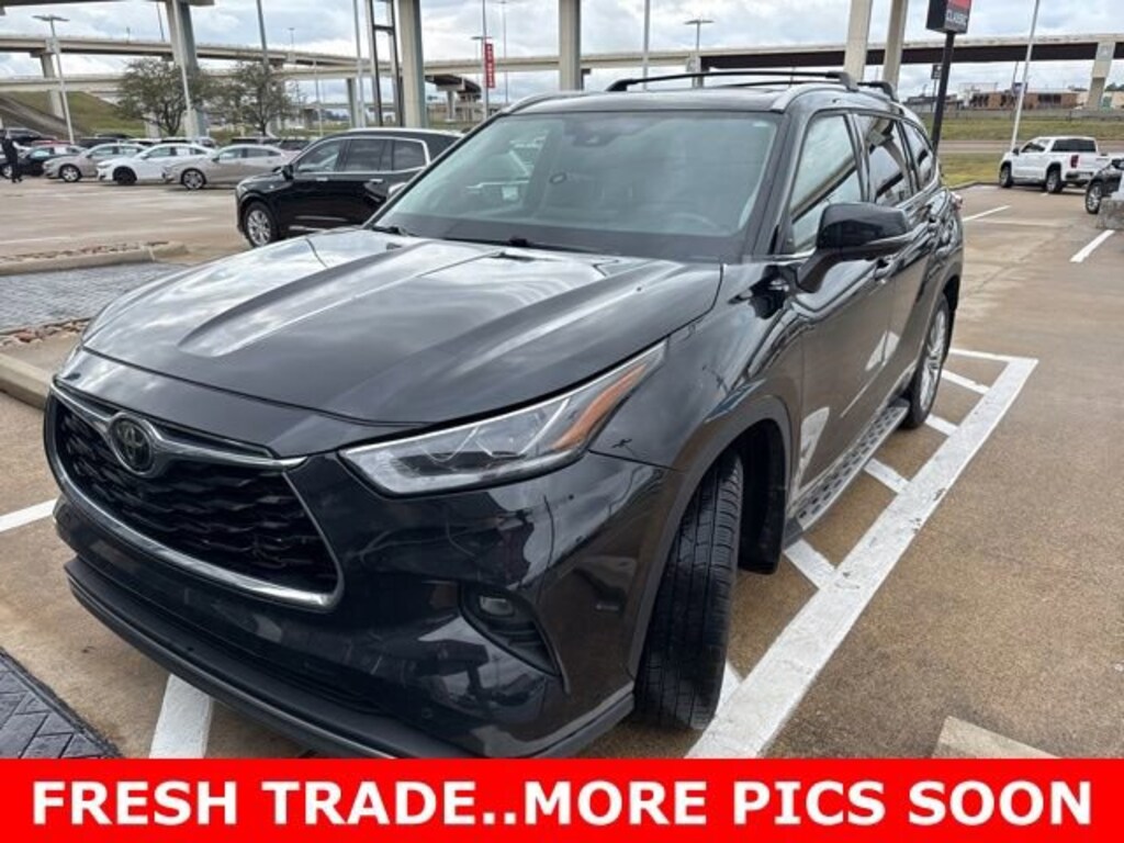 This 2023 Toyota Highlander comes equipped with the following features Platinum Package (Digital Rearview Mirror w/HomeLink, High Grade LED Projector Headlights, Panoramic Moonroof, and Panoramic View Monitor), 11 Speakers, 20 Painted Alloy Wheels, 3.329 Axle Ratio, 3rd row seats: split-bench, 4-Wheel Disc Brakes, ABS brakes, Air Conditioning, Alloy wheels, AM/FM radio: SiriusXM, Apple CarPlay/Android Auto, Auto High-beam Headlights, Auto-dimming Rear-View mirror, Automatic temperature control, Brake assist, Bumpers: body-color, Delay-off headlights, Digital Rearview Mirror, Driver door bin, Driver vanity mirror, Dual front impact airbags, Dual front side impact airbags, Electronic Inner Mirror, Electronic Stability Control, Emergency communication system: Safety Connect (up to 10-year trial subscription), Four wheel independent suspension, Front anti-roll bar, Front Bucket Seats, Front Center Armrest, Front dual zone A/C, Front fog lights, Front reading lights, Fully automatic headlights, Garage door transmitter: HomeLink, Heads-Up Display, Heated door mirrors, Heated front seats, Heated rear seats, Heated steering wheel, Heated/Ventilated Front Bucket Seats, Illuminated entry, Knee airbag, Leather Seat Trim, Leather Shift Knob, Leather steering wheel, Low tire pressure warning, Memory seat, Navigation system: Drive Connect Cloud Navigation (1-year trial subscription), Occupant sensing airbag, Outside temperature display, Overhead airbag, Overhead console, Panic alarm, Passenger door bin, Passenger vanity mirror, Power door mirrors, Power driver seat, Power Liftgate, Power moonroof, Power passenger seat, Power steering, Power windows, Radio: 12.3 Toyota Audio Multimedia w/JBL Premium, Rain sensing wipers, Rear air conditioning, Rear anti-roll bar, Rear reading lights, Rear window defroster, Rear window wiper, Reclining 3rd row seat, Remote keyless entry, Roof rack: rails only, Security system, Speed control, Speed-sensing steering, Split folding rear seat, Spoiler, Steering wheel mounted audio controls, Tachometer, Telescoping steering wheel, Tilt steering wheel, Traction control, Trip computer, Turn signal indicator mirrors, Variably intermittent wipers, and Ventilated front seats. CARFAX One-Owner. 2023 Toyota Highlander Platinum FWD 2.4L I4 PDI Turbocharged DOHC 16V LEV3-SULEV30 265hp